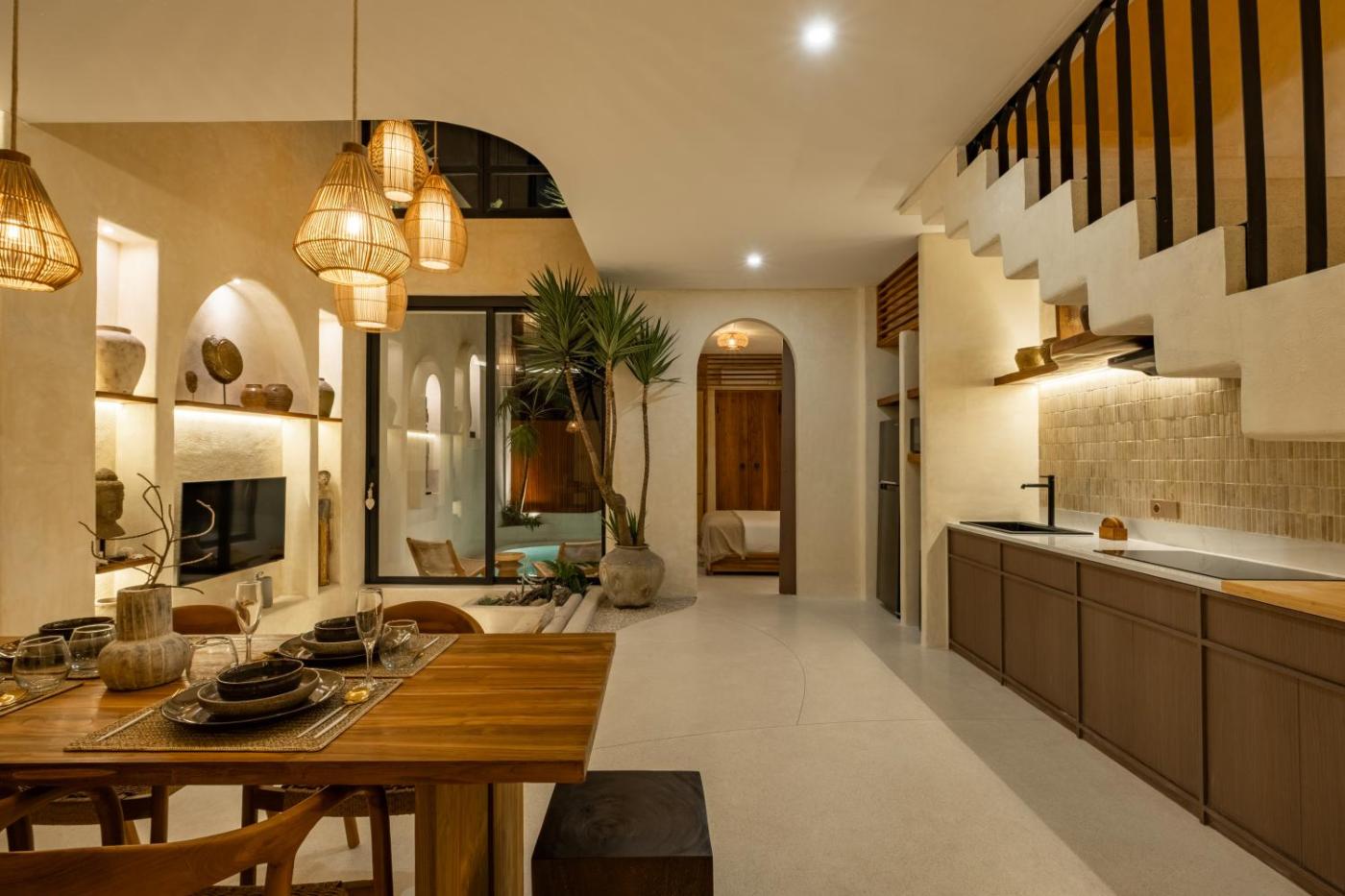 Two-Bedroom Villa. The private pool is the special feature of this villa. Boasting a private entrance, this air-conditioned villa includes 1 living room, 2 separate bedrooms and 2 bathrooms with a shower and a bidet. Guests can make meals in the kitchen that has a stovetop, a refrigerator and a microwave. The spacious villa offers a flat-screen TV with streaming services, a tea and coffee maker, a seating area, a dining area as well as garden views. The unit has 2 beds.