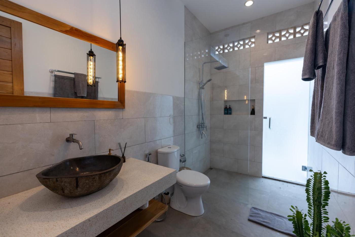 One-Bedroom Villa. The private pool is the special feature of this villa. Featuring a private entrance, this air-conditioned villa comprises a kitchen, 1 bedroom and 1 bathroom with a walk-in shower and a bidet. The fully equipped kitchen features a stovetop, a refrigerator, kitchenware and a toaster. The villa provides a flat-screen TV with streaming services, a tea and coffee maker, a seating area, a dining area as well as garden views. The unit offers 1 bed.