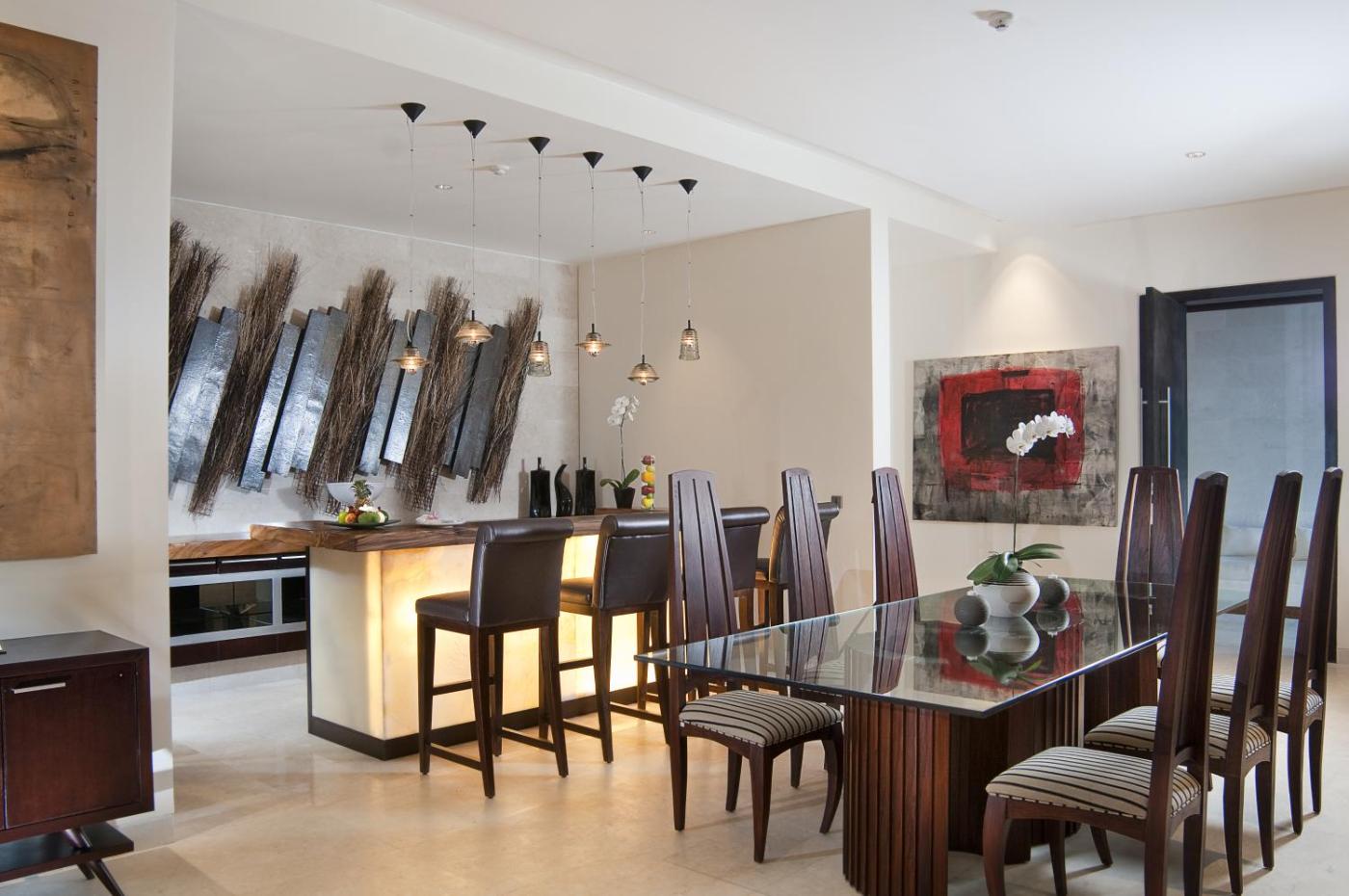 The View Five-Bedroom Villa with Benefits. This five-bedroom villa presents views of the Indian Ocean with two cliff-side outdoor infinity pools and two outdoor decks. This villa also features 2 separate living rooms, a private dining room, 2 gazebos,surrounded by tropical garden. There are also a mediacinema room with Apple TV facility, a children activity room, as well as wine cellar and cigar room. This villa offers: A 24-hour butler service and Pick up to Uluwatu area and Returned airport shuttle for minimum stay of 4 nights Daily turn down service (minimum stay of 2 nights) ;